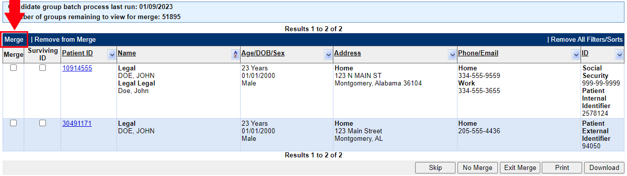 On Friday, NBS 6.0.13 was installed in production. This release includes a revamped Patient Merge screen. The change causing the most confusion is the location of the Merge button. In this version, it is a small link located on the left side just above the column headers. The button will be made much more prominent in the next release (6.0.14), which will be installed in February.